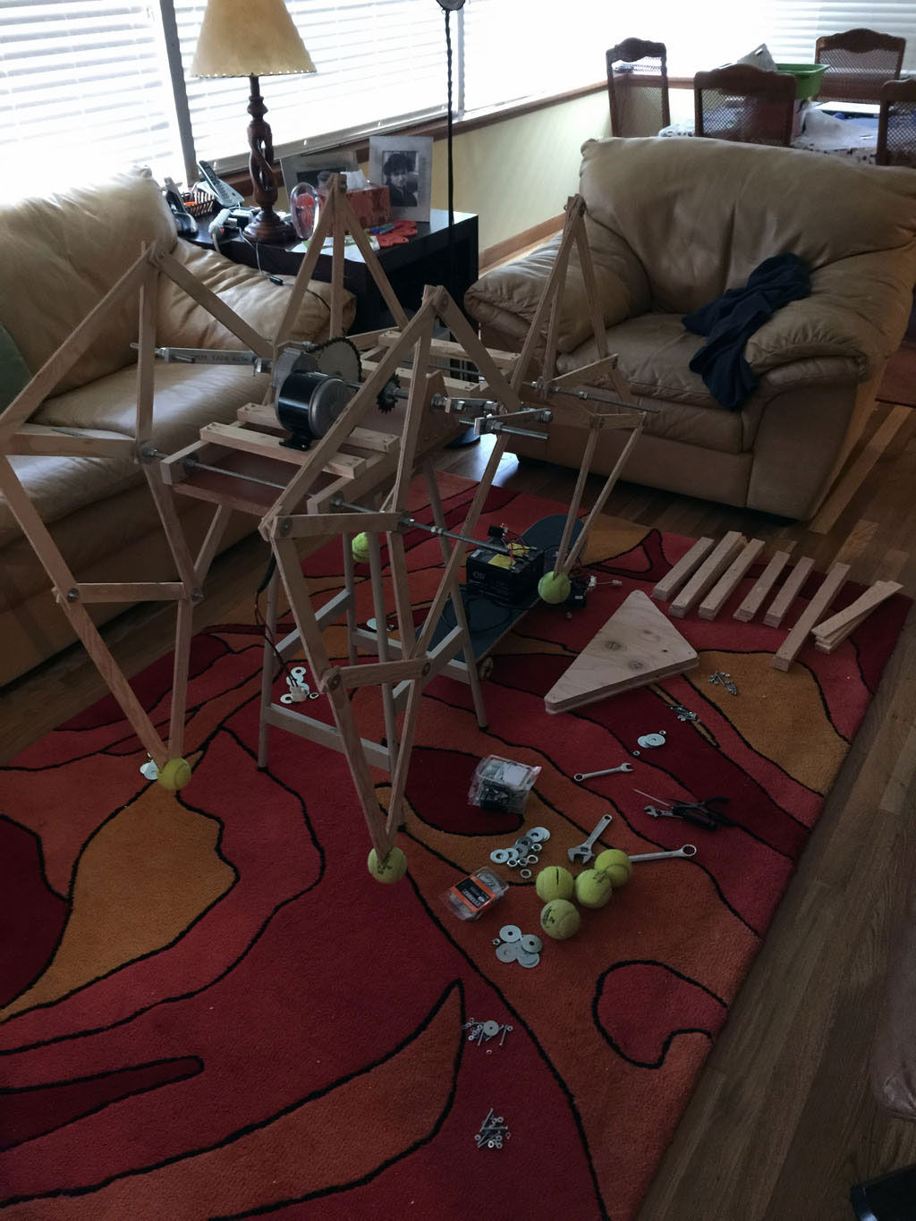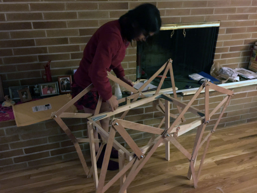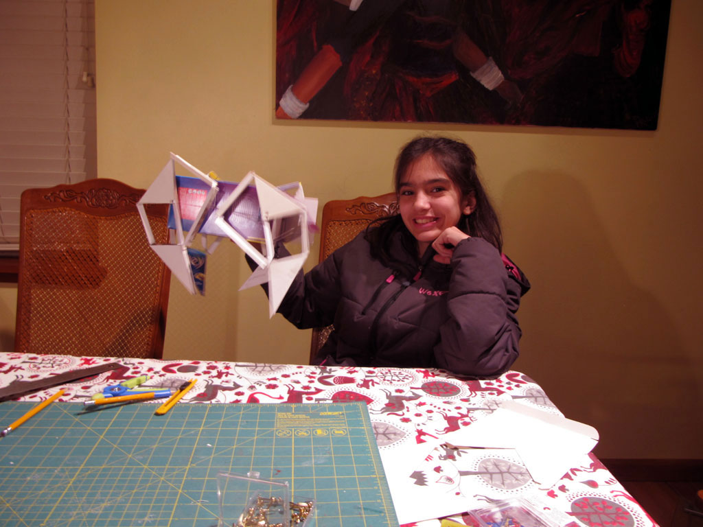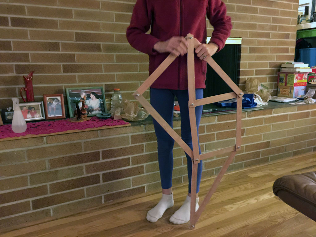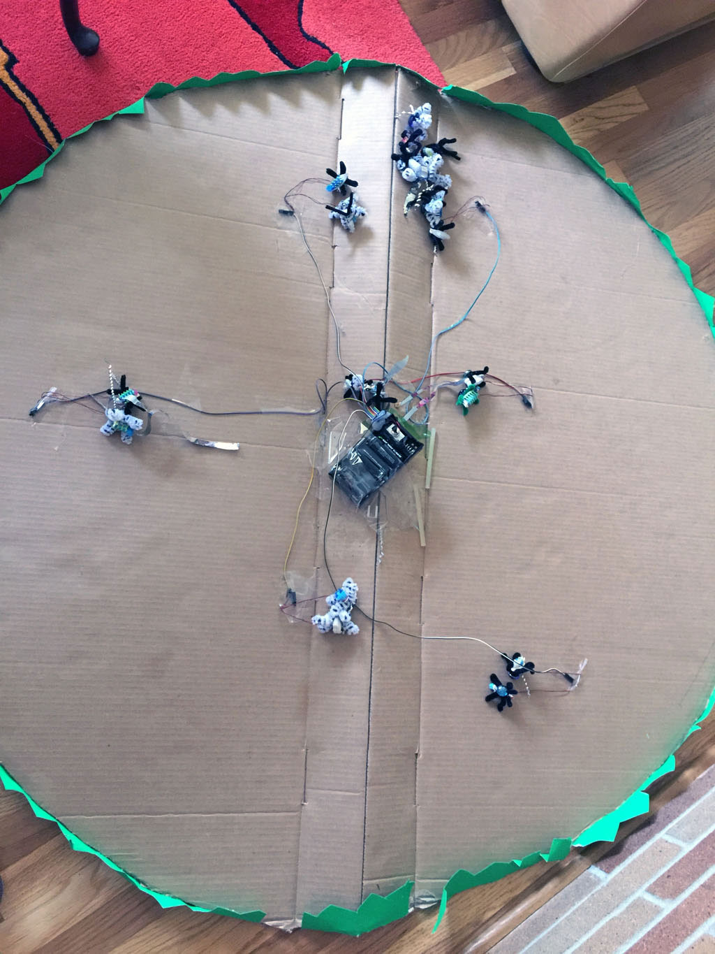 Once DI started, I looked online for ways to make a creature walk, and I found Theo Jansen's Strandbeest walking mechanism, and decided to make a prototype out of cardboard...