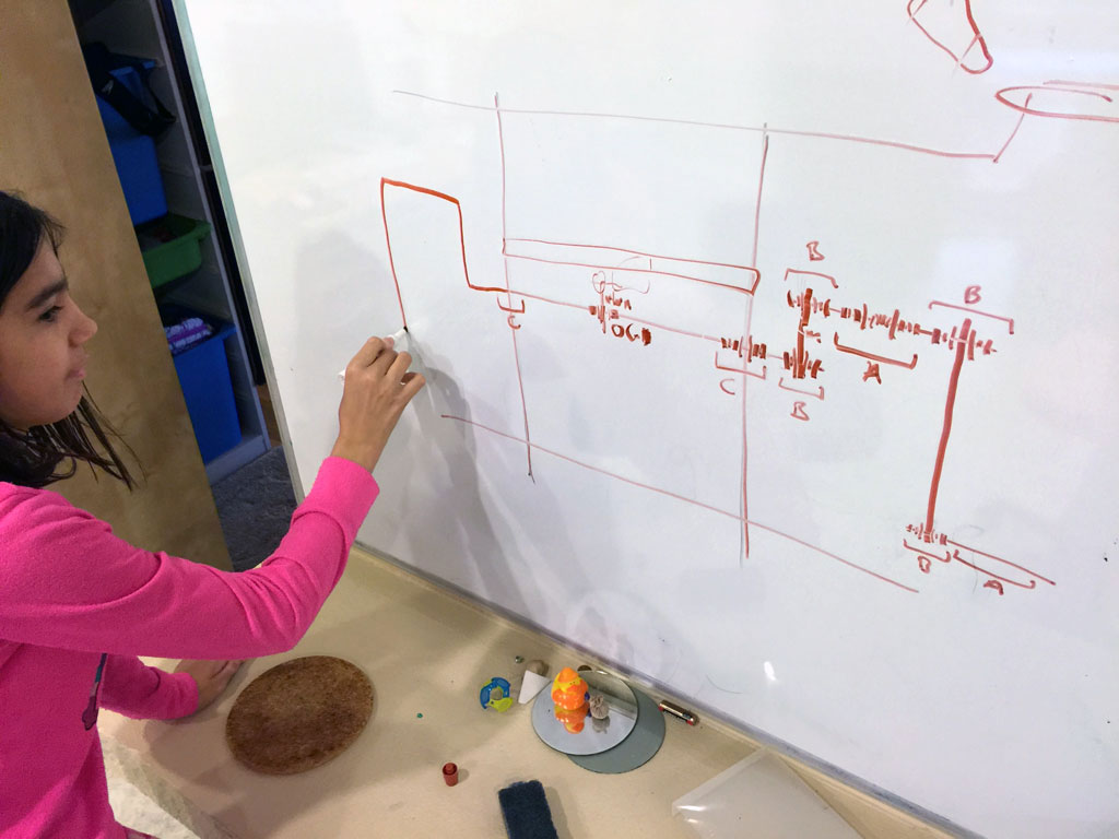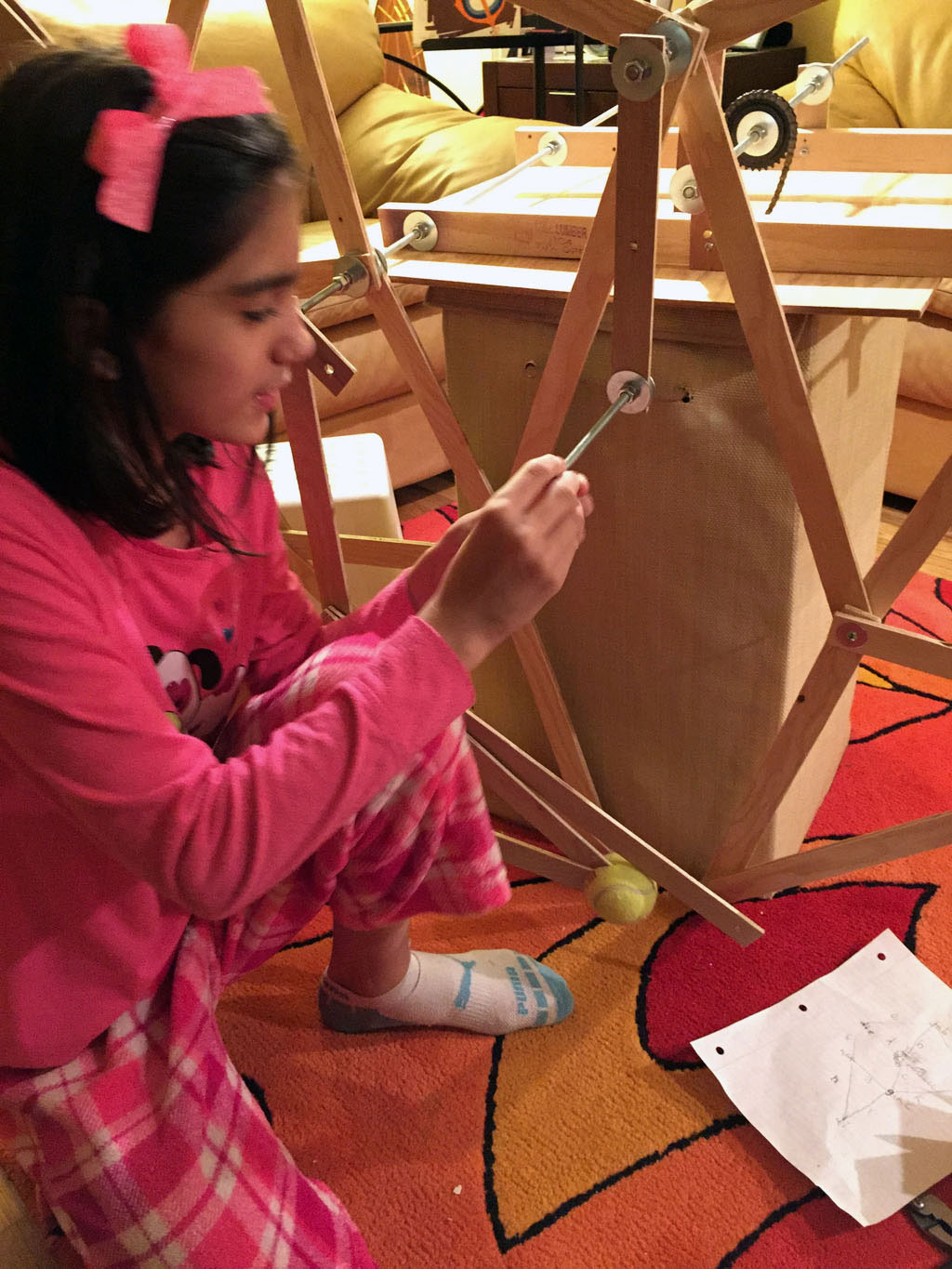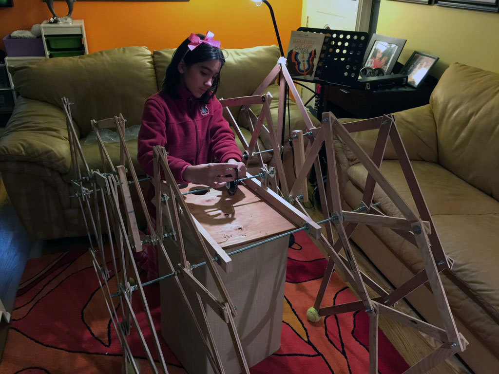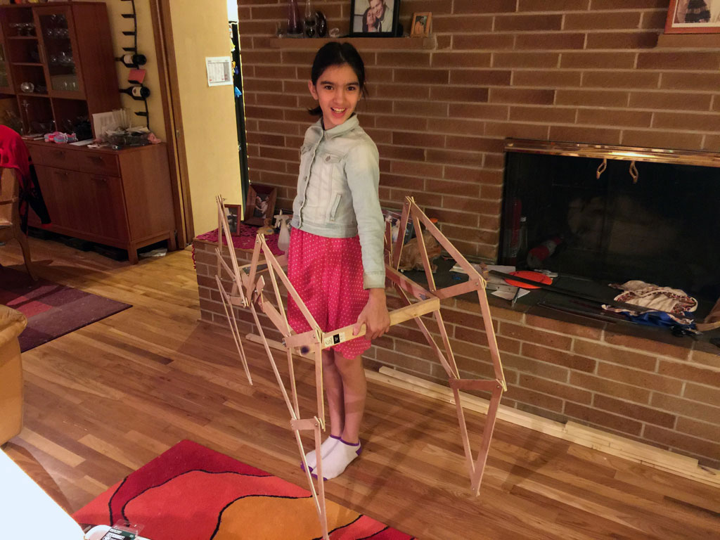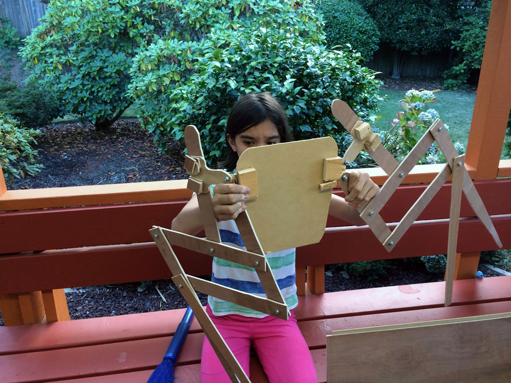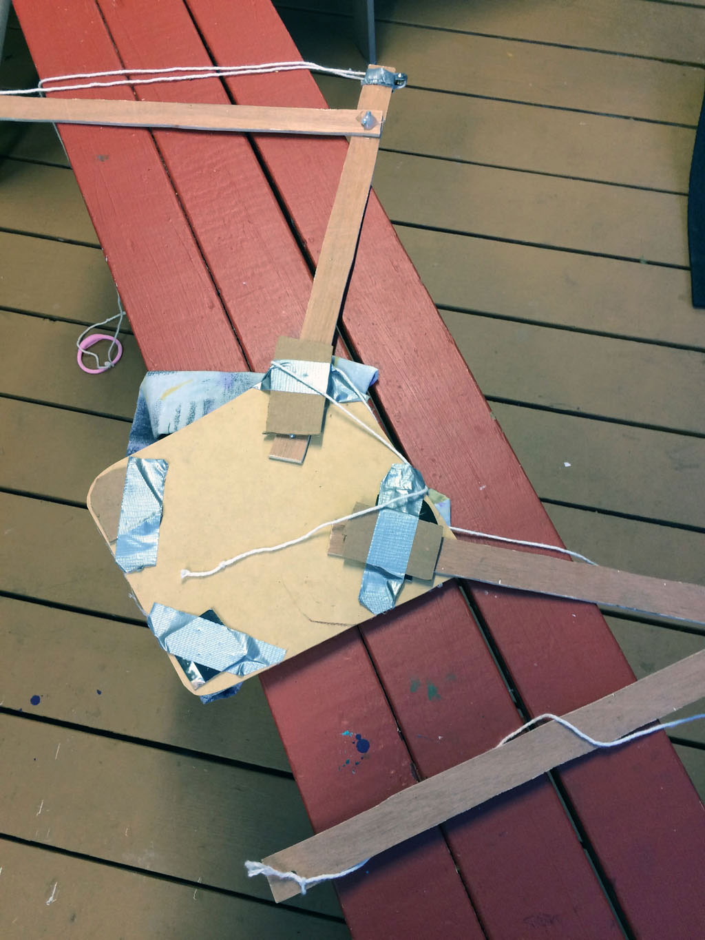 Once DI started, I looked online for ways to make a creature walk, and I found Theo Jansen's Strandbeest walking mechanism, and decided to make a prototype out of cardboard...