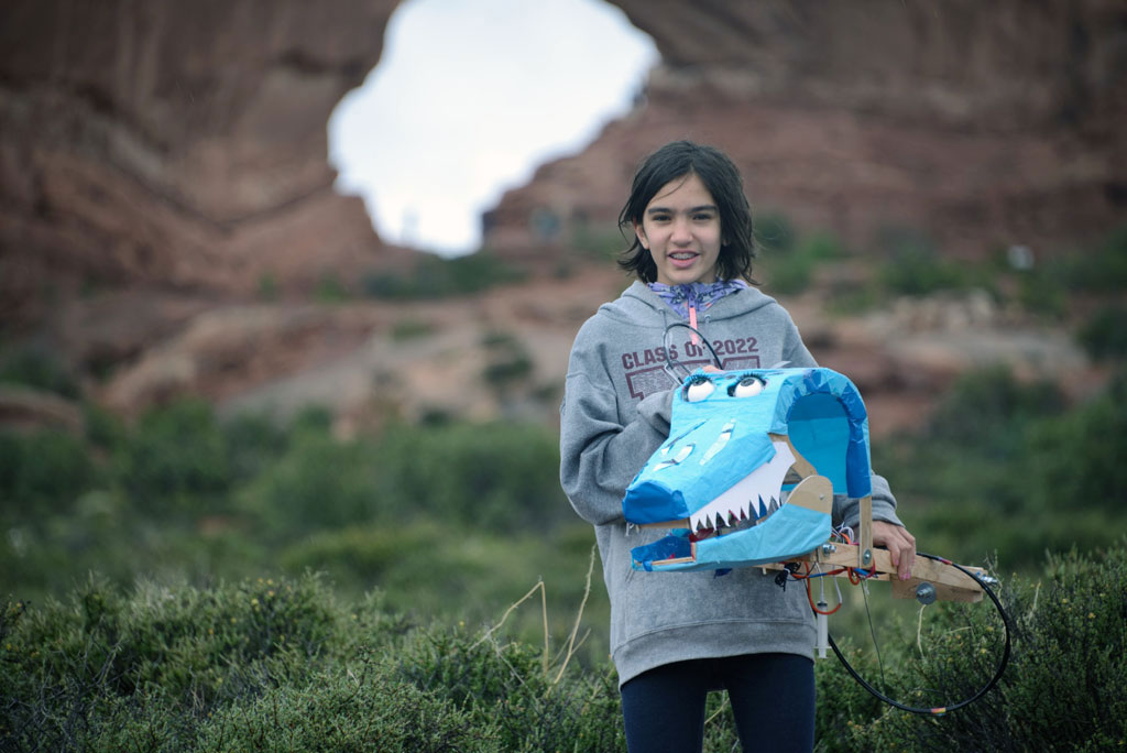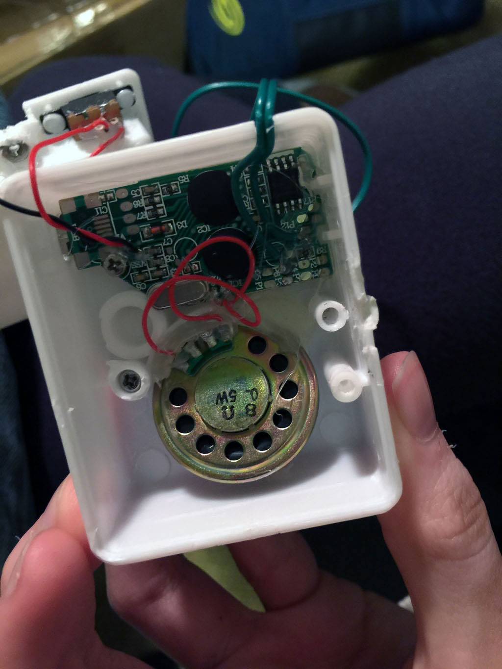 Bluthe gets a voice using a teddy bear voice recorder and a tweaked recording of a roar in Audacity. The sound had to be modified to sound good on the tiny speaker in the voice recorder.