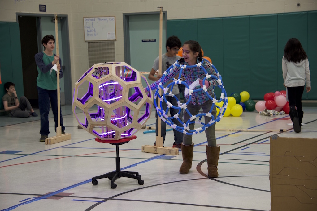 For Destination Imagination 2016, I decided to do the Scientific challenge, which involved creating a camouflaging organism. After lots of brainstorming, and reading about boring octupuses, I decided to push the limits and make a camoflaging virus. I had heard about viruses with chimeric antigen receptors being used to treat cancer, and thought it would be really cool to make a virus-like ball with robotic tendrils to look like antigens.