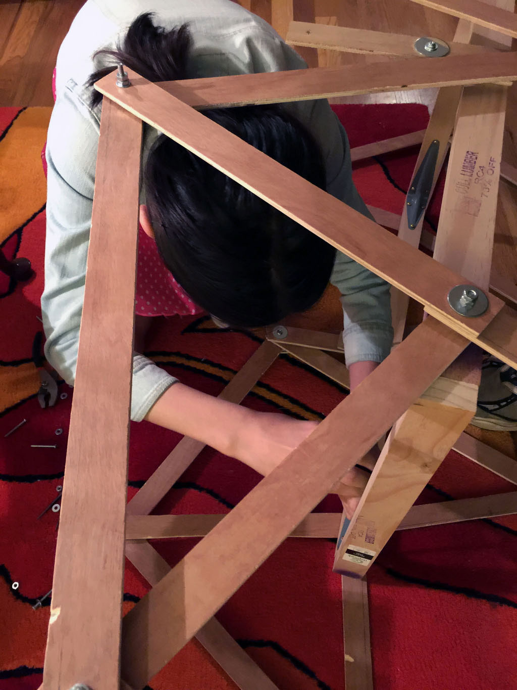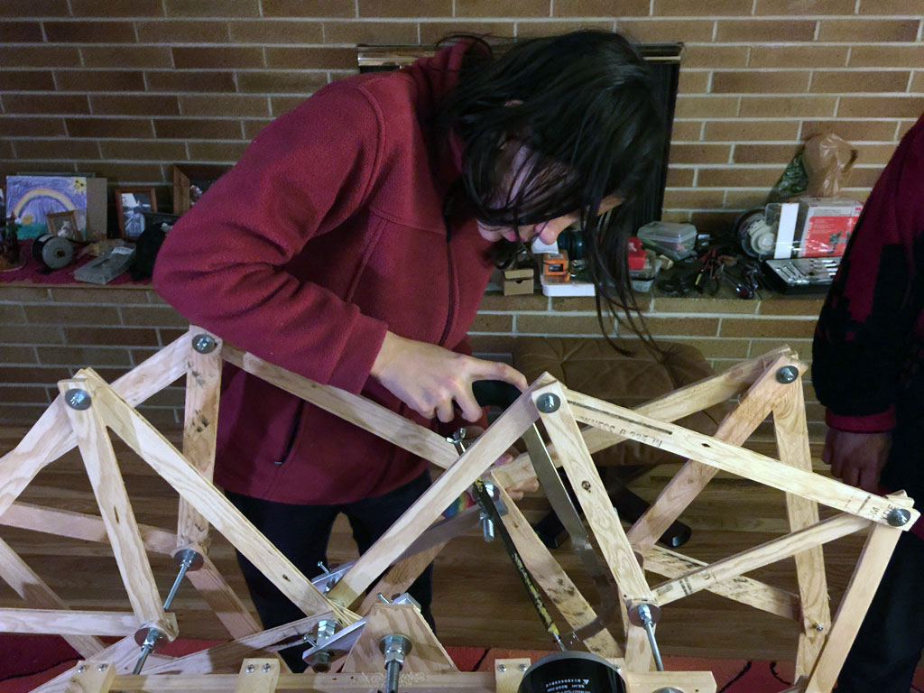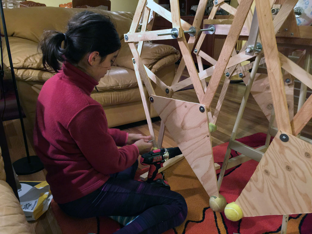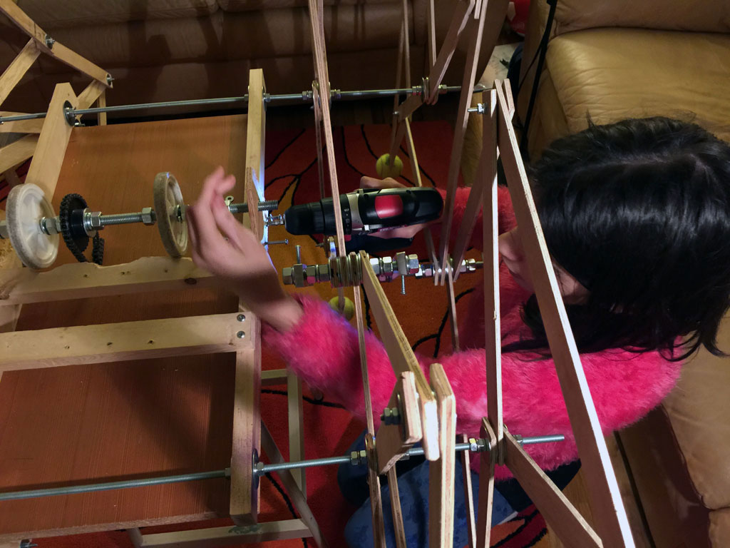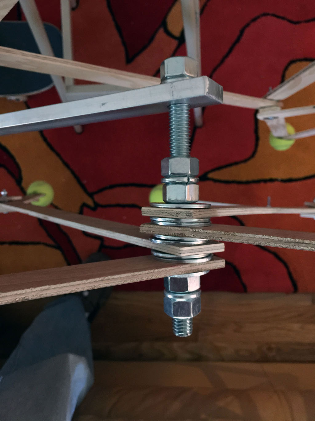 The first one was made of threaded rod and plywood.