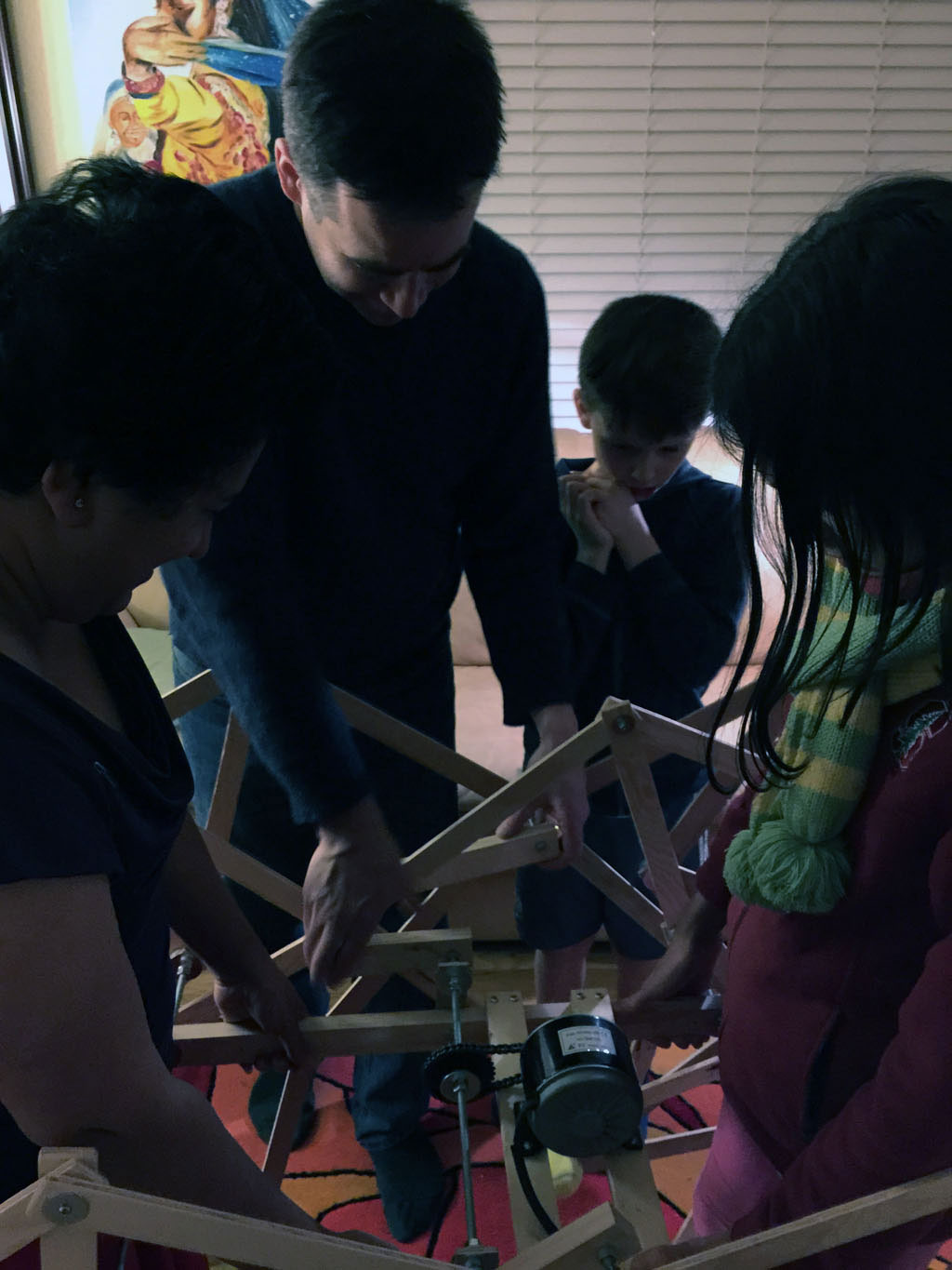 During the first presentation, he broke a leg. Luckily I found a way to give him a new one without taking apart the whole thing again.