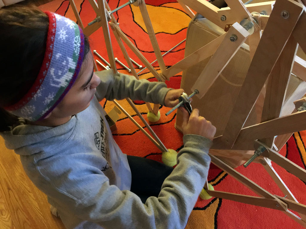 I had to learn to become a two-tong twister to be able to put all the nuts together around the locknuts. But, slowly the legs took shape, and I could see what the creature would look like.