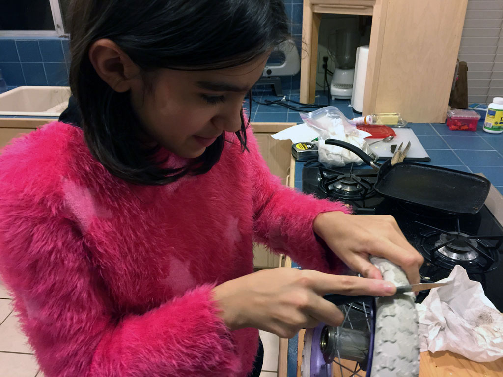It turned out to be really difficult to attach the gears to the motors, because the openings in them weren't all the same size, and it was hard to make them fit tightly. I tried lots of things to stick in the hole, and glues, and the best I found was an epoxy glue, but it's not great. The gears still come loose sometimes.