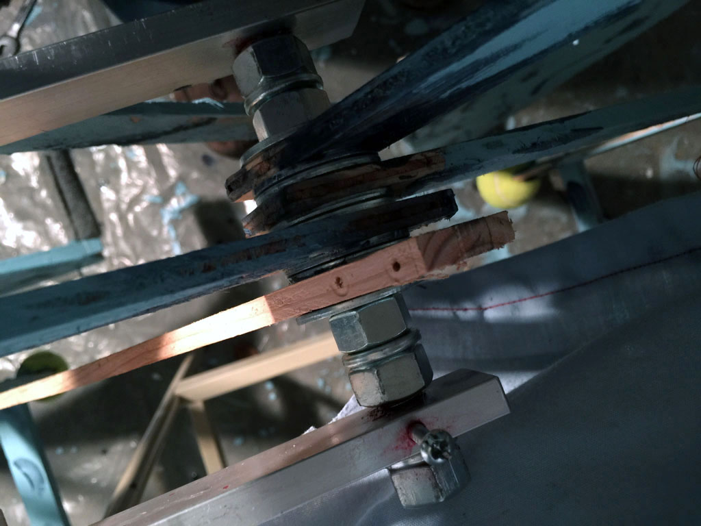 I tried to stop the joints in the cranshaft from slipping by screwing smaller bolts sideways into the rod, but the bolts just snapped. Finally I tried threadlocker, and it held, although it turns out, just barely. When the crankshaft slips, the legs get out of alignment, and they can break very quickly.