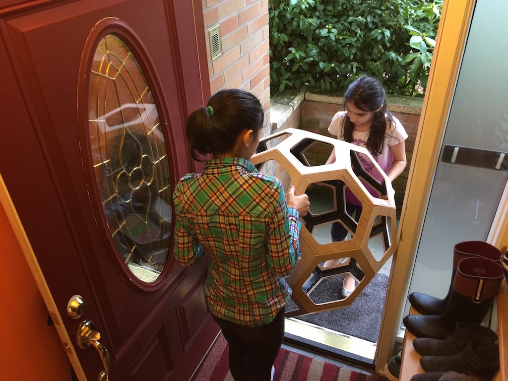 And, it fit through the door, at least if you tilted it just so, so that there is a flat face to each side against the door frame.