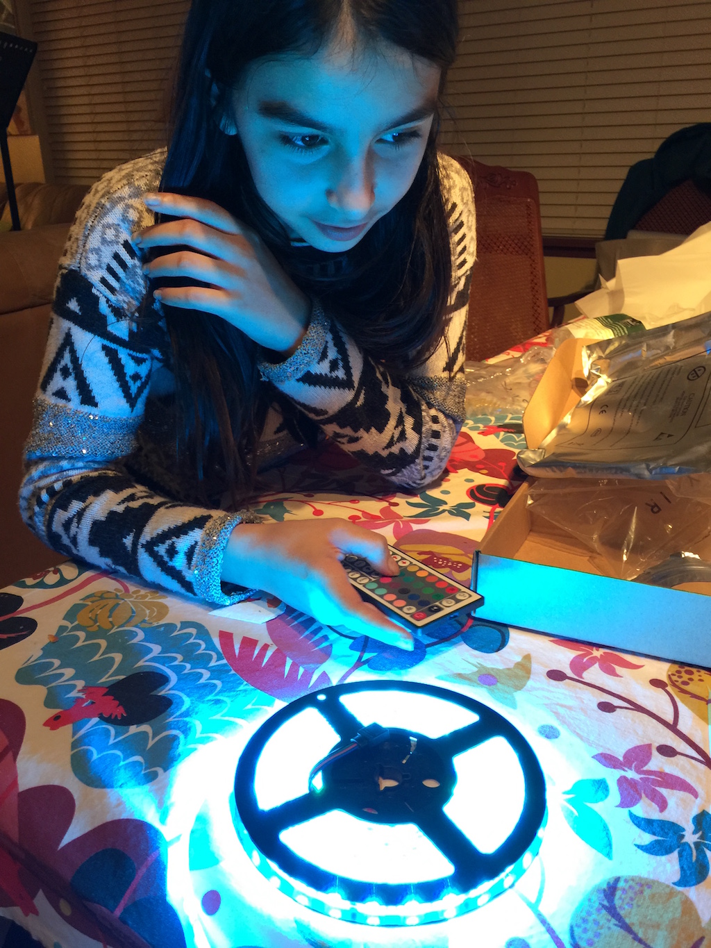 I wanted the virus to light up in different colors, and I found some amazing and cheap LED lights online. I bought LEDs in squares, and movie reels. The squares were really cool, but they would require tons of soldering, and some Arduino programming. The movie reels were perfect, though, because they came with a remote control that you could use to set the color and brightness with.